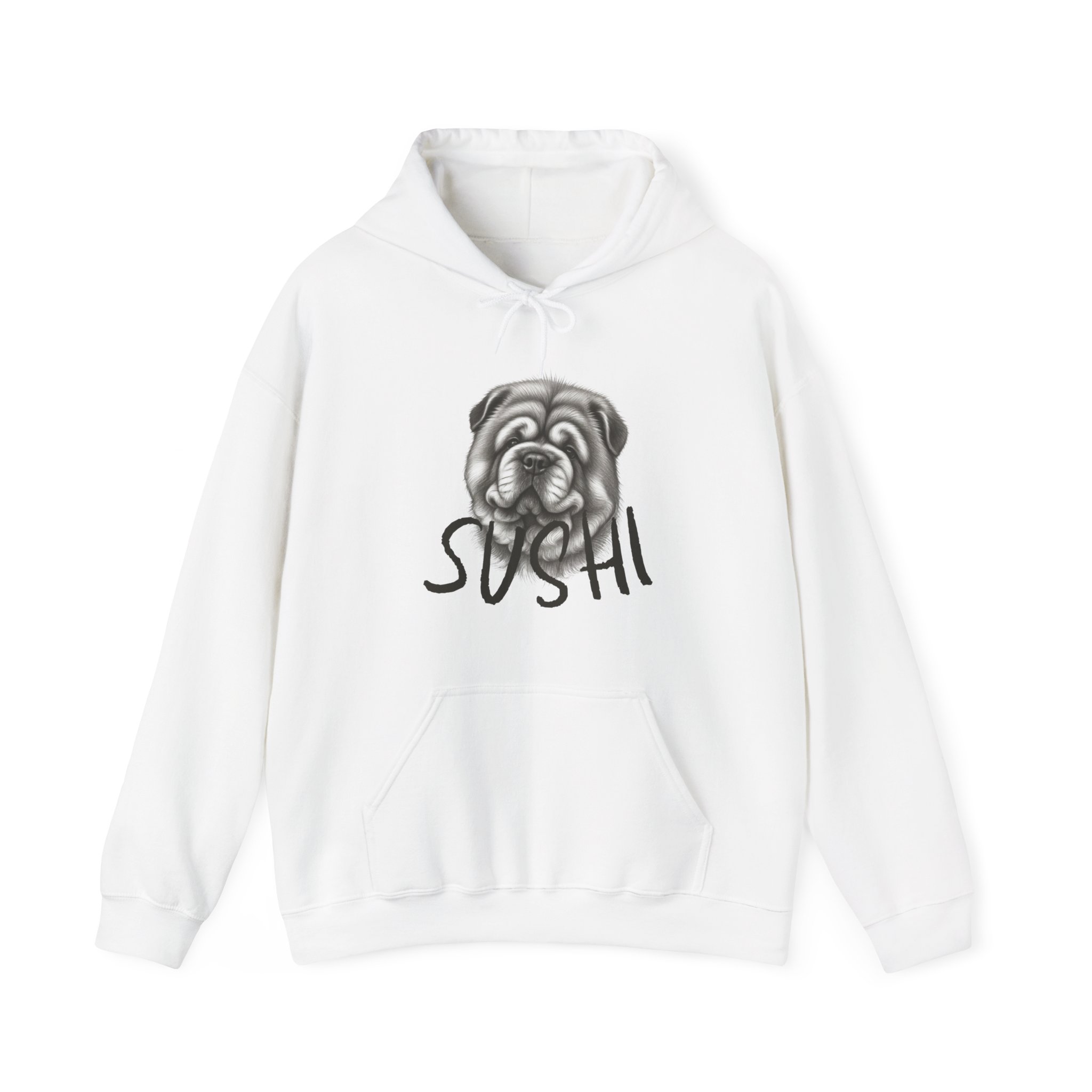 A cozy, lived-in hoodie that feels like a gentle hug from your favorite pup. The soft, mid-weight fabric holds a hand-sketch style dog portrait above a handwritten name, giving the front a personal, artful look. Wear it when you need quiet mornings with coffee, slow walks through the neighborhood, or nights on the couch — it settles into those small, comforting routines. The kangaroo pocket and double-lined hood add everyday practicality, while the neutral palettes let the illustration stand out without shouting. This is for people who collect quiet moments and subtle statements: dog lovers, sketch-art fans, and anyone who likes their layers to feel both worn-in and thoughtfully made.